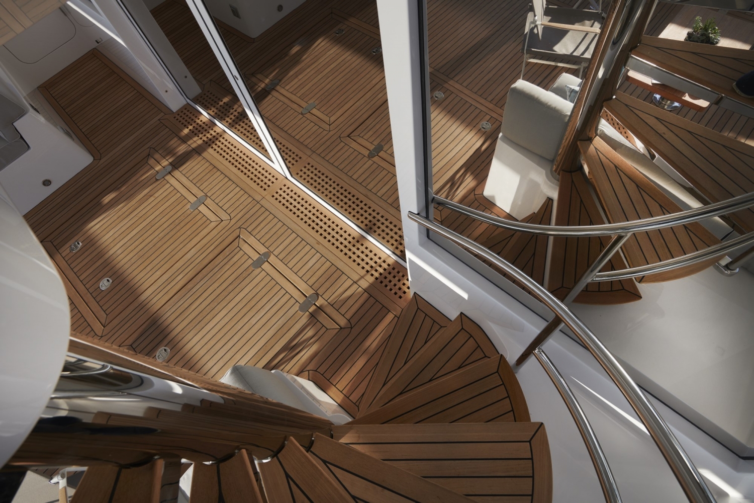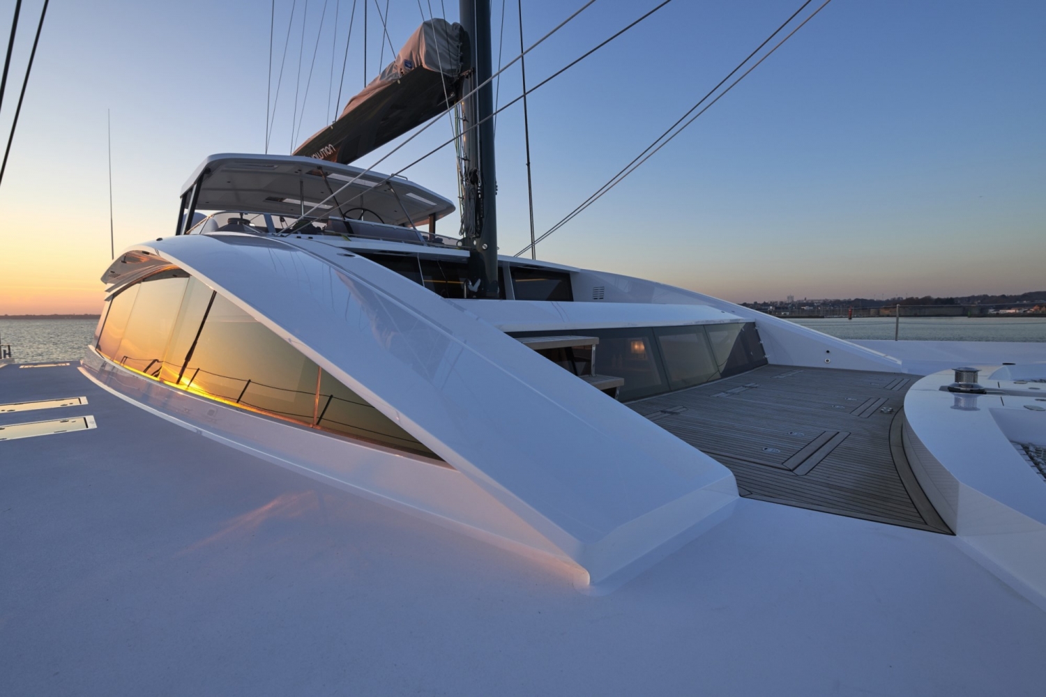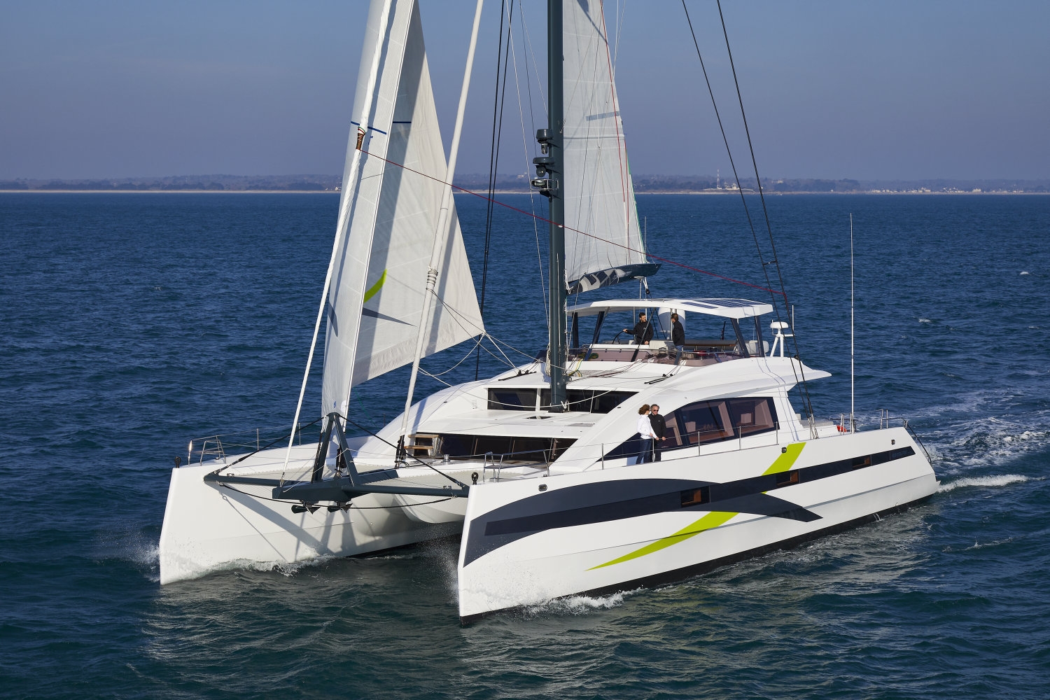 Equipped with a carbon mast and boom, this yacht has a sail design cut for performance .and the hydraulic winches on the flybridge are adapted to manoeuvers with a reduced crew.