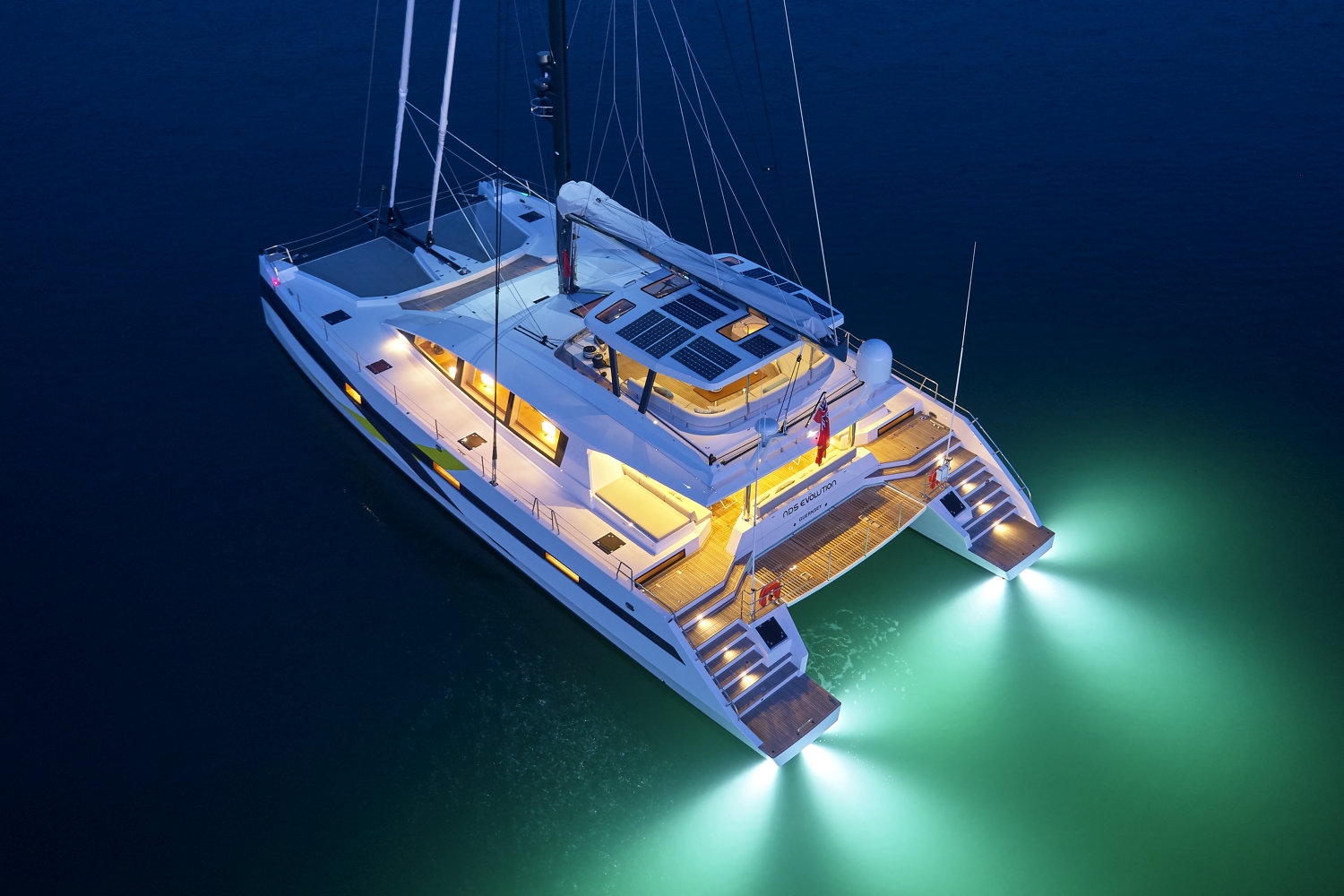 The starboard hull also offers an aft double guest cabin whilst the forward part is dedicated to the crew with the captain's cabin, a twin cabin, a large galley with crew mess.